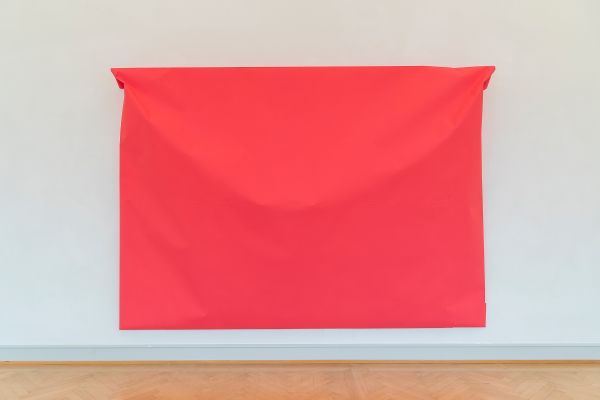 Felix Baudenbacher entwickelte im Sommer 2017 seinen eigenen Farbton – Bau Pink. Seither arbeitet er ausschliesslich in dieser Farbe. Er identifiziert sich mit dieser Farbe. Die Arbeit im Heimspiel 2021 besteht aus einem Papier, das überdimensioniert über einen Keilrahmen gespannt wurde. Bei jeder Neuhängung und Neupräsentation verändert sich die objekthafte Struktur des Werks. Zusammen mit dem Titel Oh What Fragile Things We Arereferieren Farbe und Material auf das Werk selbst als auch auf den Künstler.