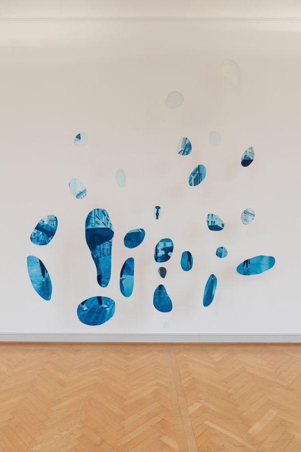 Das Fragmentarische sowie die Verfremdung der situativ direkt wahrgenommenen Umgebung sind zwei zentrale Aspekte in der Arbeit von Flavio Hodel. Mit dem Titel Flaneuse zeigt er im Kunstmuseum St.Gallen eine als Mobile präsentierte – im Raum hängende – Malerei, deren Ausgangspunkt ein filmisch aufgezeichneter Spaziergang durch St.Gallen ist. Unterschiedliche Bewegungsrichtungen und Lesarten werden in der Präsentationsform möglich. Seine Arbeit thematisiert das subjektive Zusammenführen eines als Spaziergang wahrgenommenen Bildes.